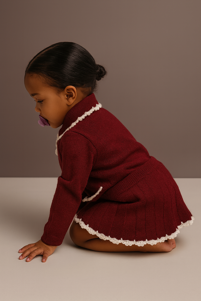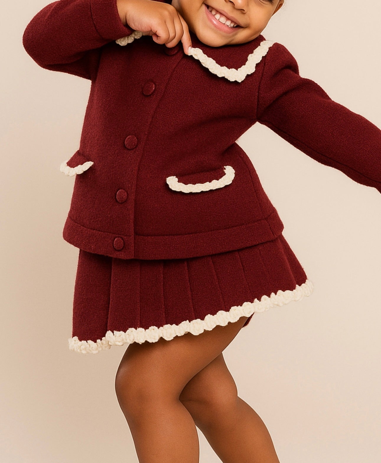 Introducing our Mulberry Rose Burgundy Set, a timeless two-piece. Crafted in a rich mulberry hue with soft cream scalloped trims.