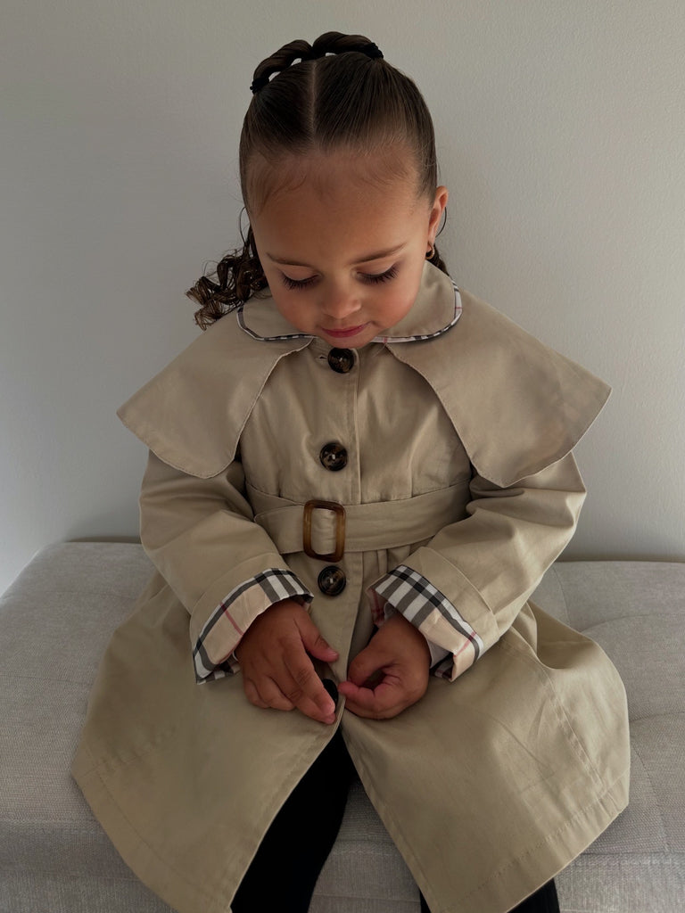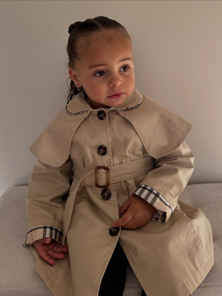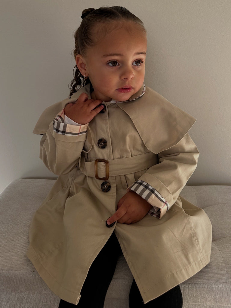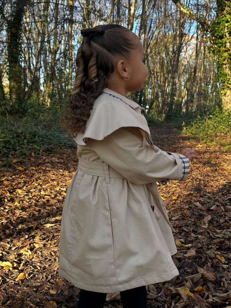 A stunning addition to this autumns wardrobe, this elegant piece features a versatile tie-up belt, allowing for an adjustable fit. Crafted from a lightweight fabric, it’s designed for mild autumn days— please note, this is not a winter coat.